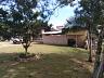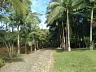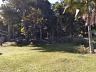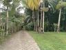O terreno é vasto e bem cuidado, com vegetação natural que inclui gramados extensos, árvores frutíferas e jardins.