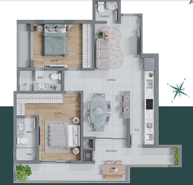 • 02 Suítes • 01 Vaga de garagem• Lavabo • Piso em porcelanato • Piso vinílico nos dormitórios • Teto rebaixado em gesso • Infraestrutura para ar split • Ampla sacada com churrasqueira.