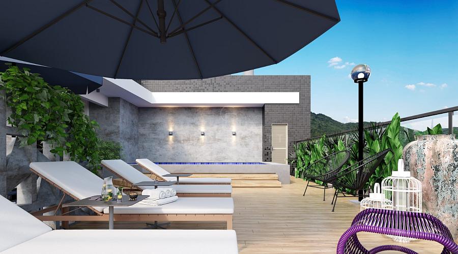 Área de lazer no Rooftop toda equipada e mobiliada
