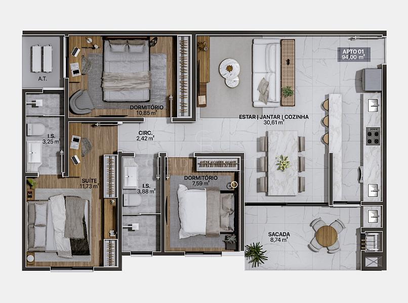 - 3 dormitórios