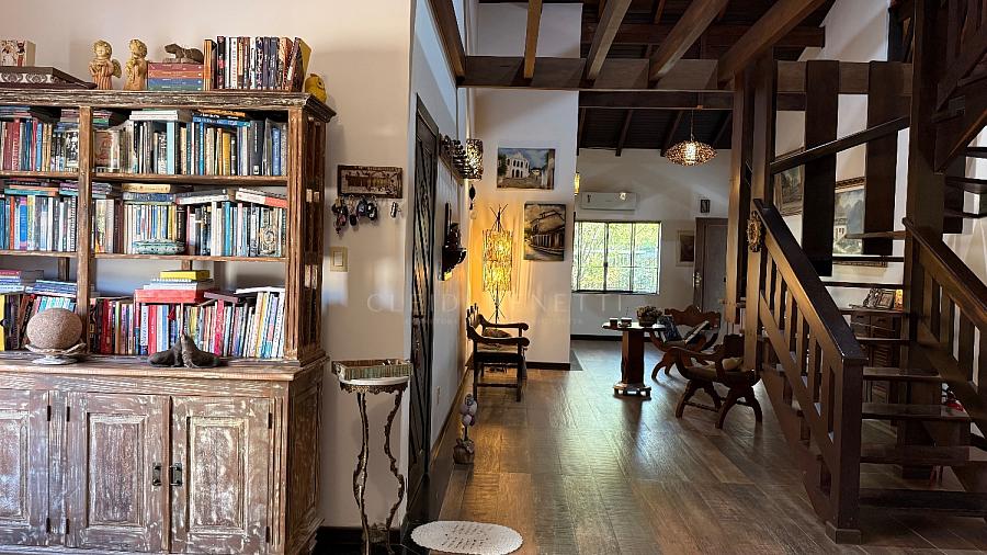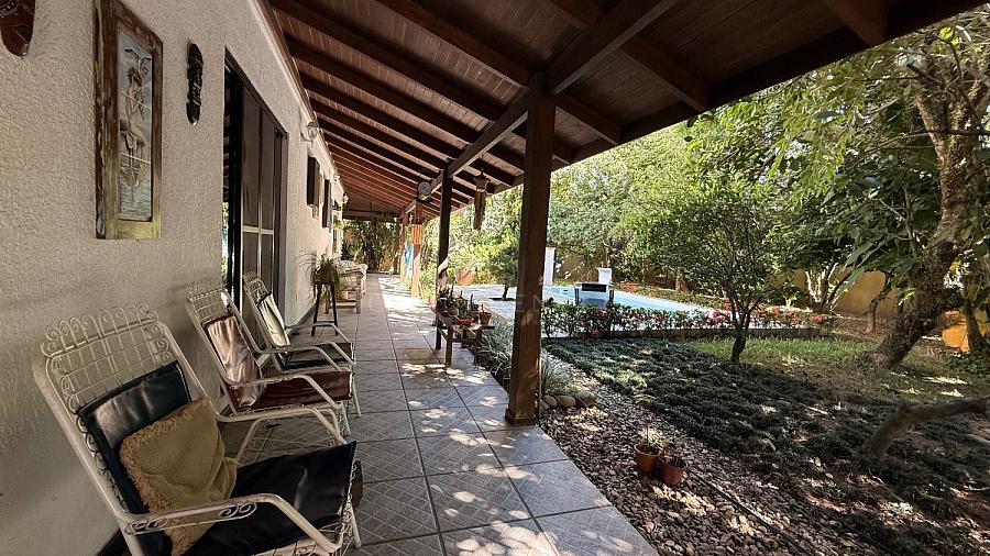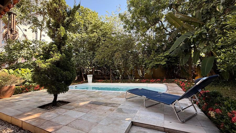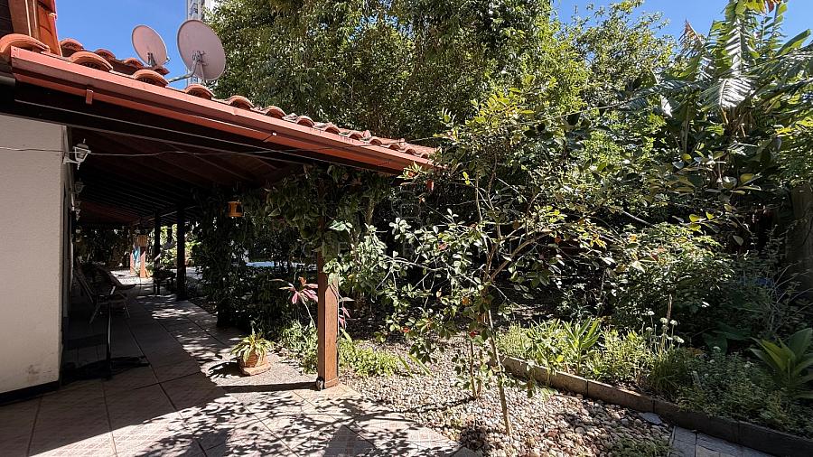 Implantada em um amplo terreno de 825 m², a propriedade é rodeada por árvores frutíferas, criando uma atmosfera acolhedora e relaxante — sensação de casa de campo no meio da cidade.