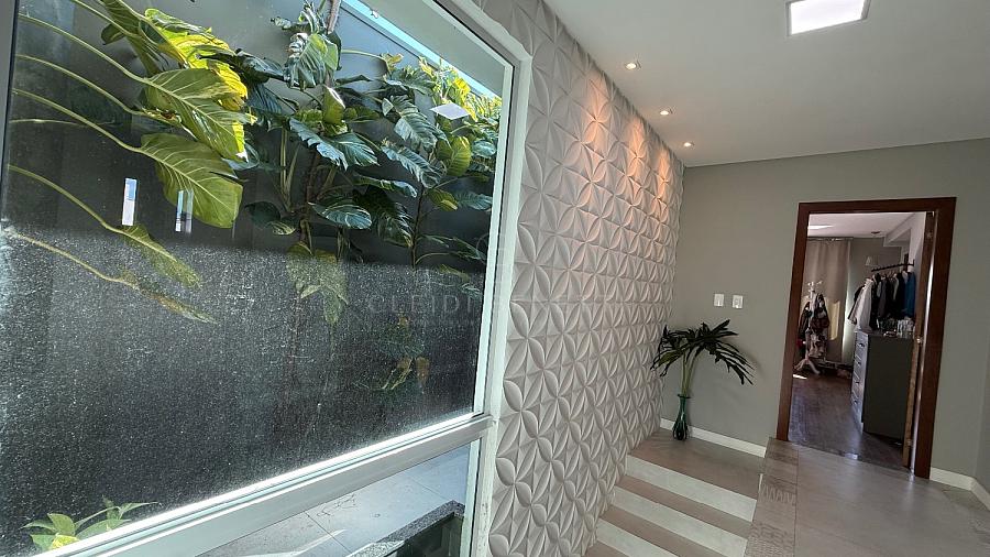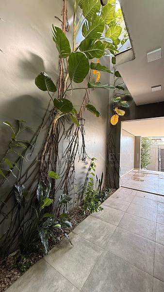 Entrada pelas laterais, trazendo mais privacidade e praticidade, além de um lindo jardim de inverno, que traz iluminação natural e deixa o ambiente ainda mais acolhedor.