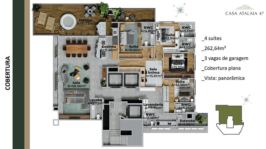 262,64 m² de área privativa